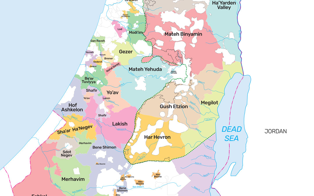 מפת ישראל – מועצות אזוריות, גרסה מצומצמת באנגלית