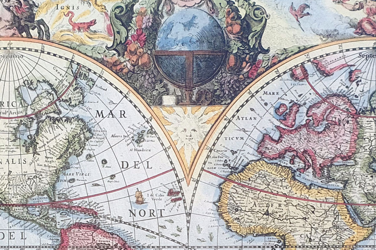 Replica of the ancient world map in two spheres. Can be suitable as an impressive gift for the office, living room and collectors.