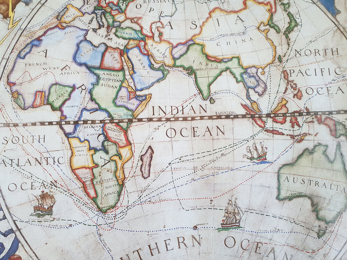 The discovery map of the earth - the eastern hemisphere