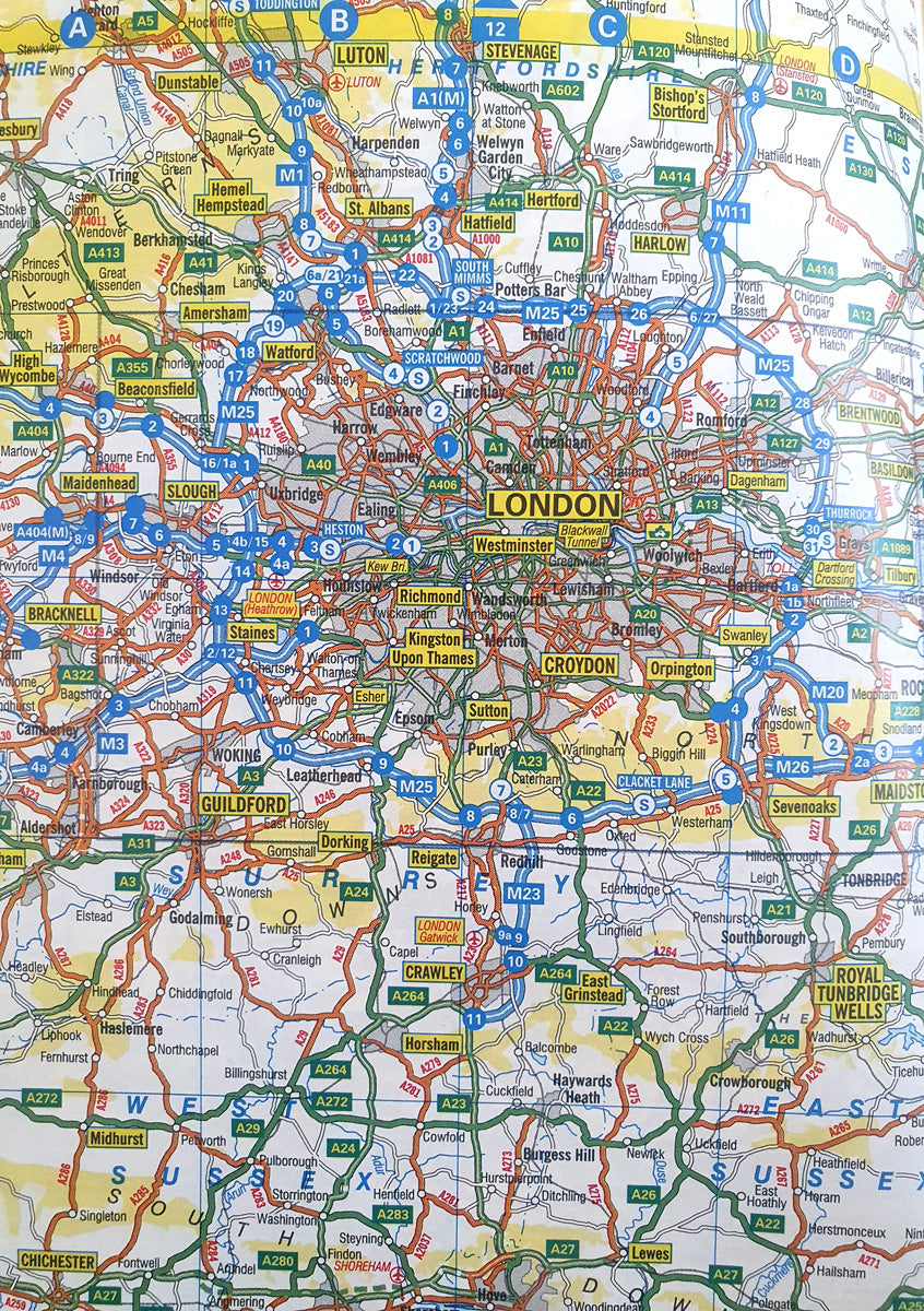המיני אטלס כולל כבישים מהירים וכבישים ראשיים, מפות של אזורים עירוניים ואינדקס של ערים ועיירות.