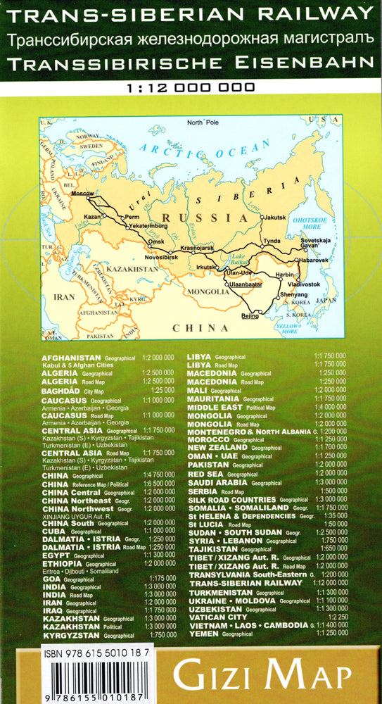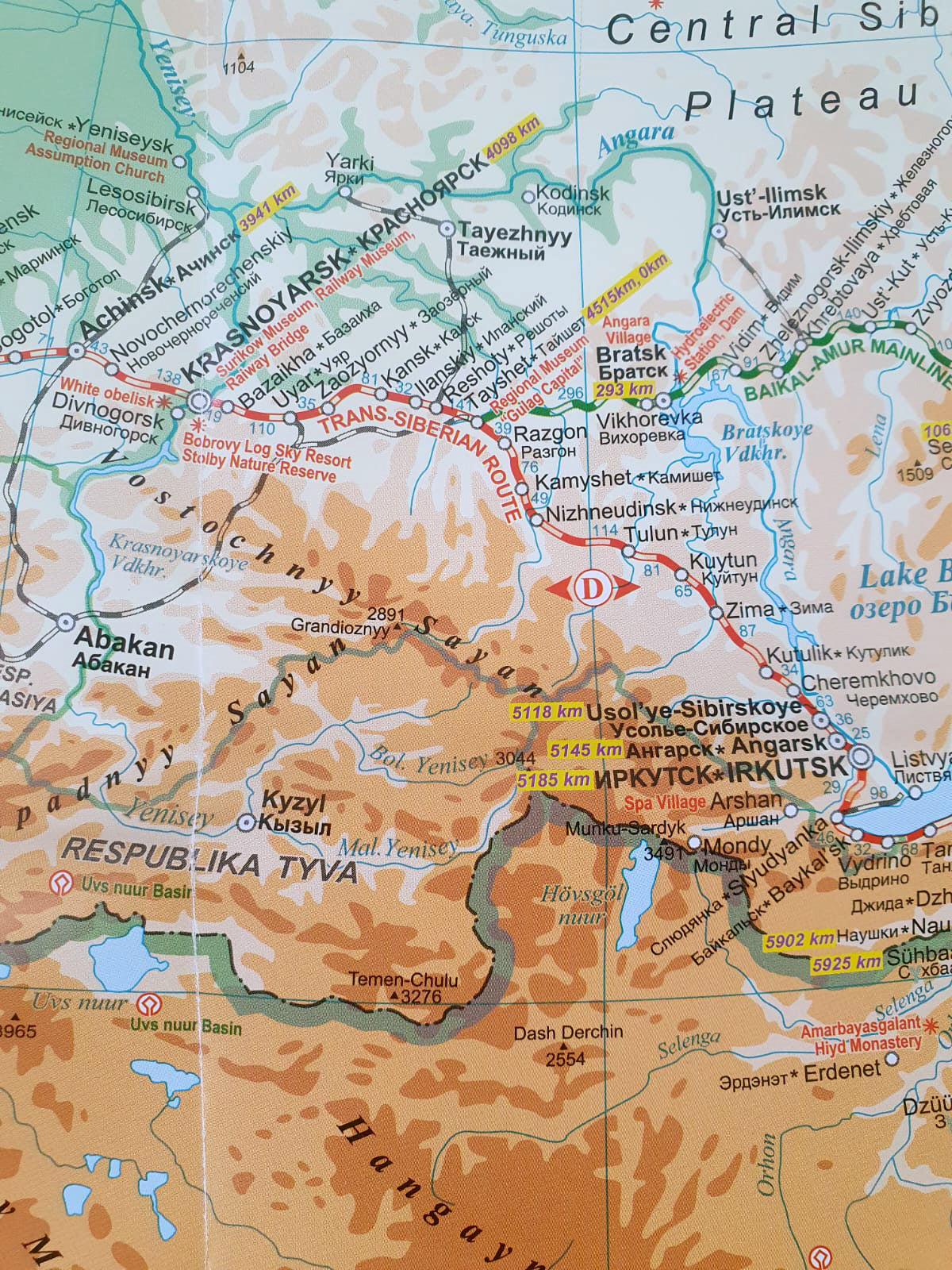 המפה מכסה את כל המסילה טרנס-סיבירית.
