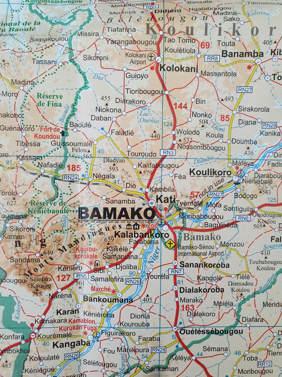 המפה מכסה את באמאקו, טימבוקטו ומדינת הדוגון.
