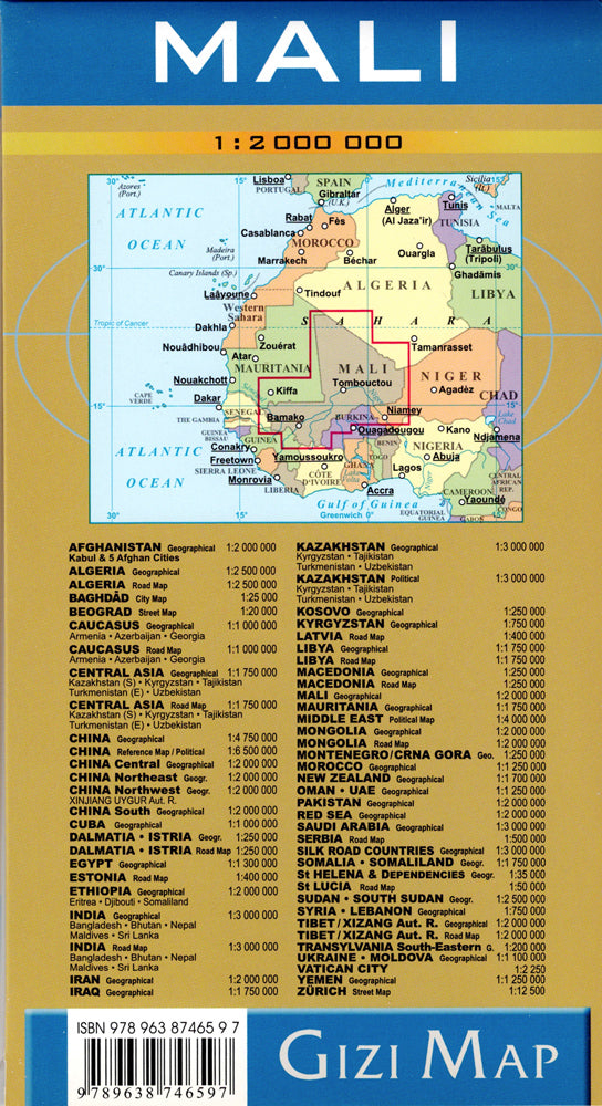 מפת מאלי הינה מפה פיזית המתאימה לניווט בכבישים הראשיים בין הערים.