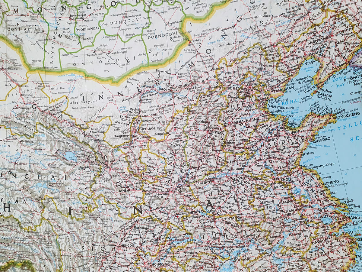 מפה זו מכילה אלפי שמות מקומות, כגון עיירות ראשוניות ומשניות, גבולות מדויקים וגבולות בינלאומיים מוגדרים, תשתיות תחבורה כמו שדות תעופה, כבישים מהירים ומסילות רכבת.