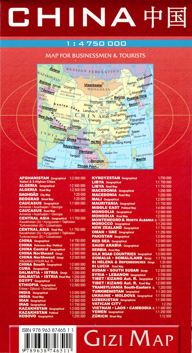 מפת סין הינה מפה פיזית המתאימה לניווט בכבישים הראשיים בין הערים. המפה מכסה את דרום רוסיה, מונגוליה, צפון קוריאה, דרום קוריאה, חלקה המערבי של יפן, צפון ויאטנאם, צפון לאוס, צפון תאילנד,  רוב מיאנמר, בנגלדש וצפון מזרח הודו.