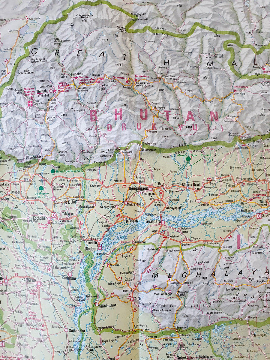מפה מפורטת עם כבישים ראשיים ומרחקים מנקודה לנקודה מסומנים בבירור.