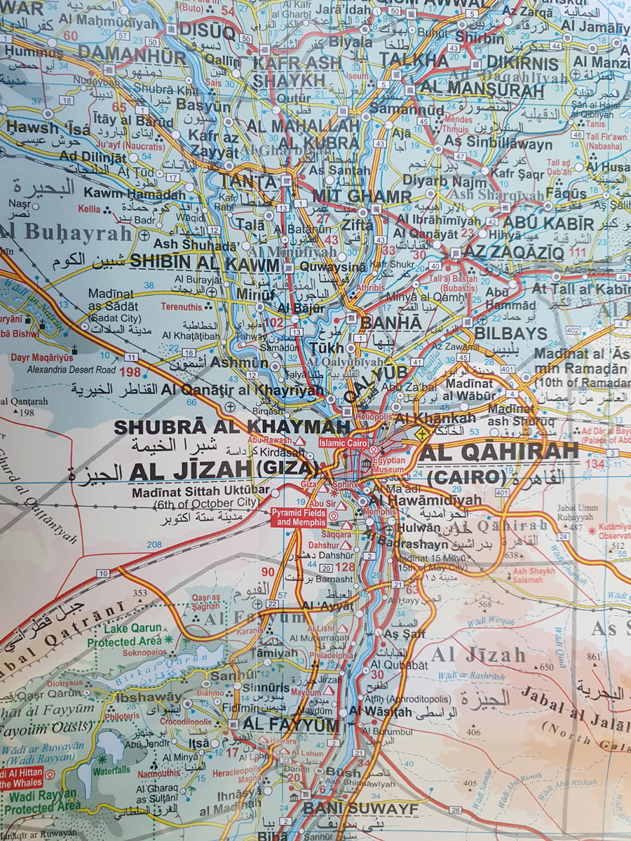 מפת מצרים הינה מפה פיזית המתאימה לניווט בכבישים הראשיים בין הערים.